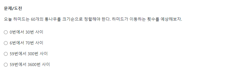 문제에서는 60개의 통나무를 크기순으로 정렬하라 했으니 최솟값은 59, 최댓값은 3481이 나오게 됩니다.