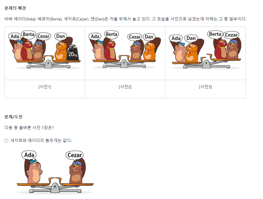 나머지 3, 4번도 경우의 수를 대입해보면 무조건 Ada가 Cezar보다 무겁기 때문에 답은 3번 선지가 됩니다.