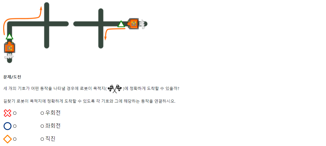빨간색으로 표시해놓은 부분을 보면 O가 우회전이여야만 도착지에 갈 수 있습니다.