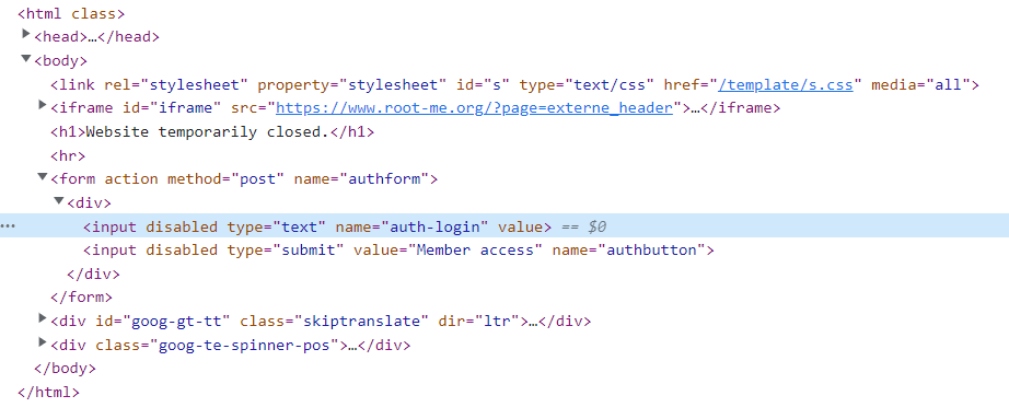 text와 submit 타입의 input 태그에 disabled라는 글자가 붙어있습니다.