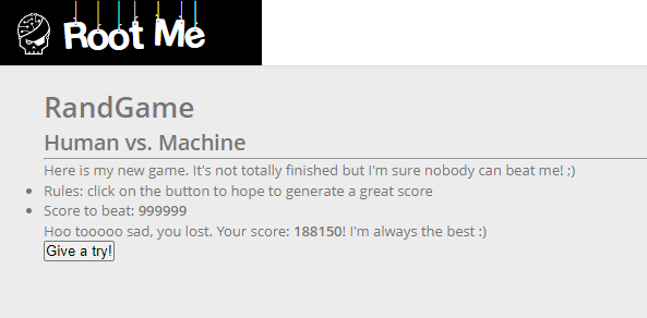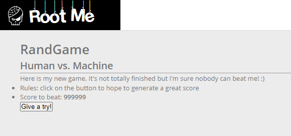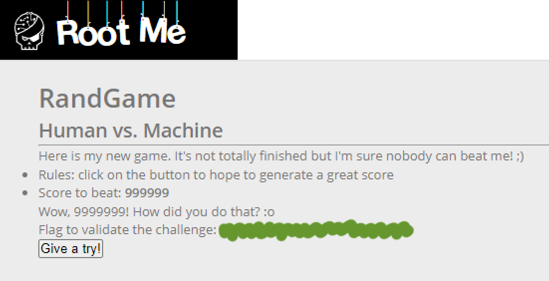 Give a try! 버튼을 눌러서 Best Score인 999999를 넘기면 되는 문제 같습니다.