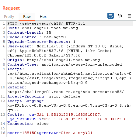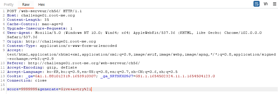 Burp Suite를 켜서 score 변수가 존재하는지 확인해보겠습니다.
