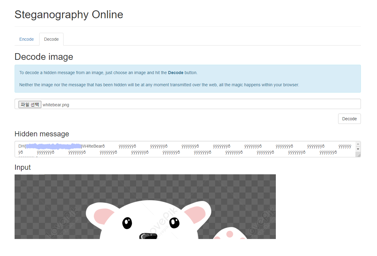 이미지 파일을 보자마자 Steganography Online부터 열었습니다