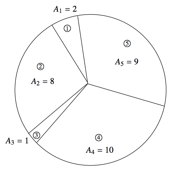 i 번째 조각의 크기는 Ai이지만, 칼질이 서툴러 Ai가 모두 다른 값을 가지게 되었다.