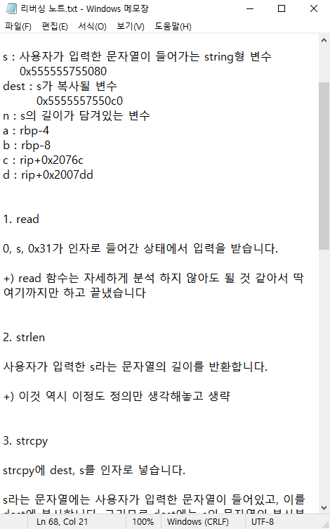 - lea rax, d : 0x555555601080(s의 주소값)을 rax가 가짐