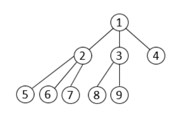 아래 그림은 노드 9개로 이루어져 있는 3진 트리이다.