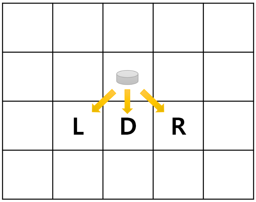 로봇 청소기가 격자 위를 이동하는 방법은 L, D, R의 세 가지인데, 로봇 청소기의 현재 위치가 라면