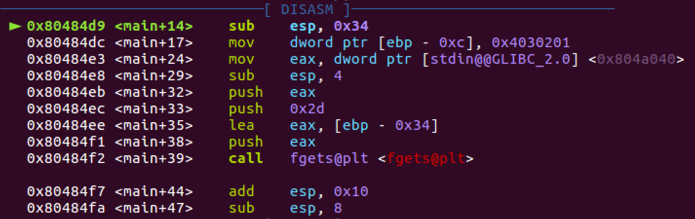 여기서 위의 C 소스코드를 보면 fgets를 호출 할 때 입력받는 크기를 45라고 지정해놨습니다.