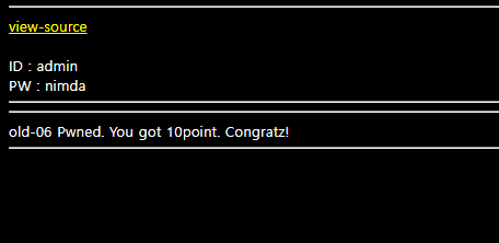 if($decode_id=="admin" && $decode_pw=="nimda"){