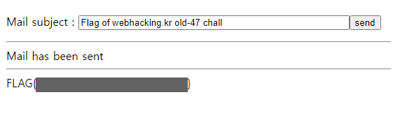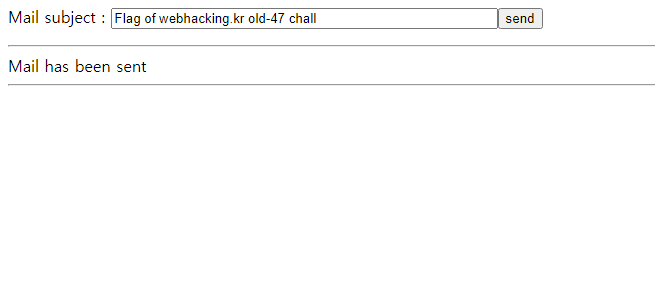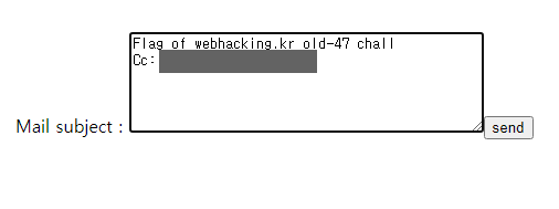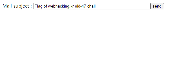 "Flag of webhacking.kr old-47 chall"이라는 문장이 자동으로 들어가 있으니, 우선 send부터 눌러보겠습니다