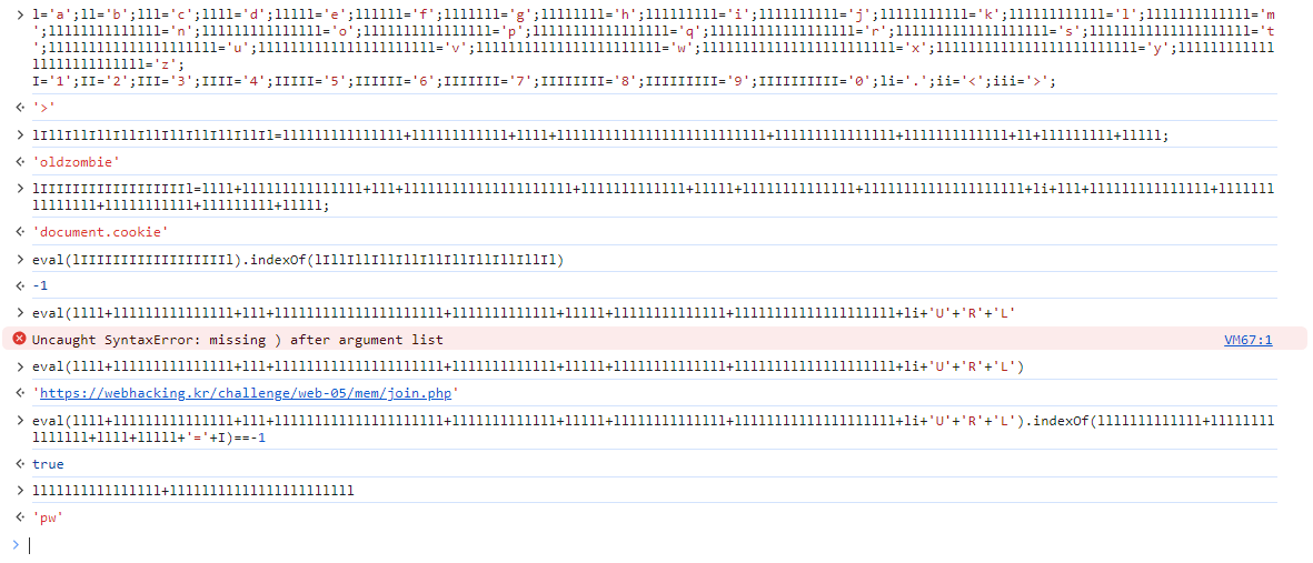 개발자도구 콘솔창에 코드 입력하며 난독화를 풀어야겠습니다