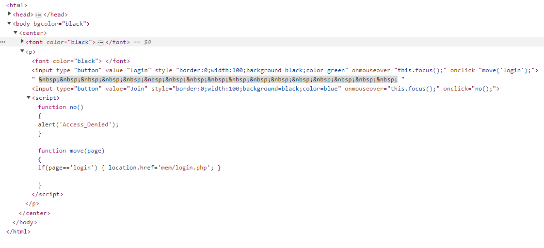 Join 버튼에 no() 함수로 onclick 이벤트가 달려있어서 "Access_Denied"가 떴던 거였네요