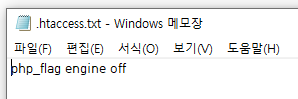 "php_flag engine off"를 적어서 업로드해주겠습니다