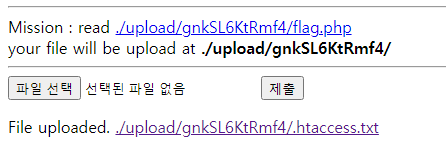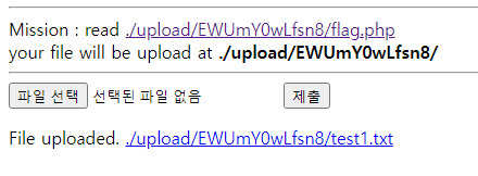 처음에 준 미션이 ./upload/EWUmY0wLfsn8/flag.php에 있는 파일을 읽어오는 것이었는데...
