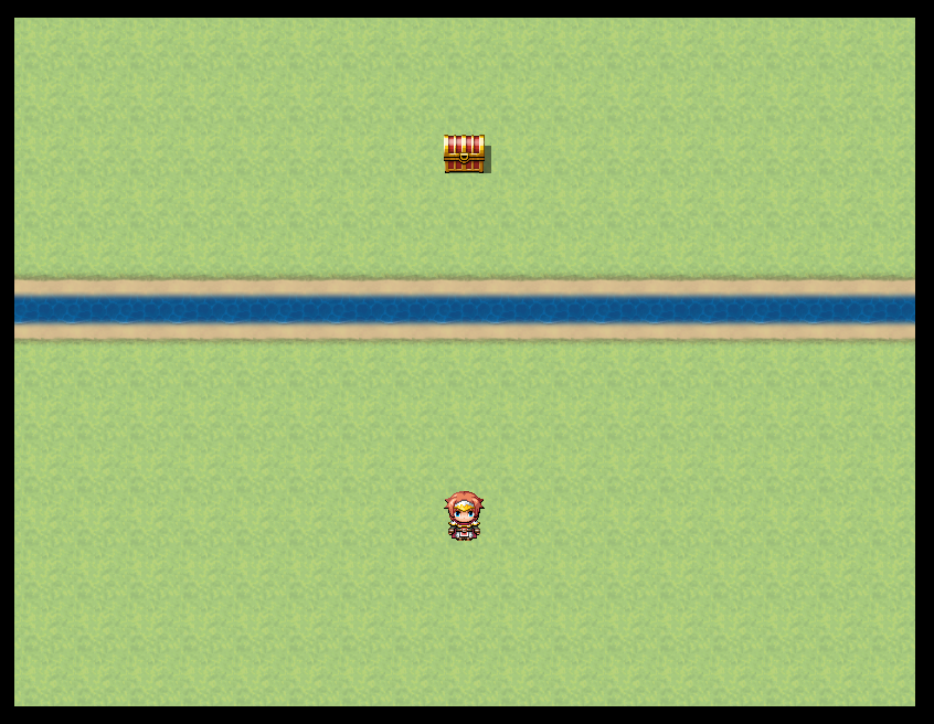 캐릭터와 물길, 상자가 보입니다