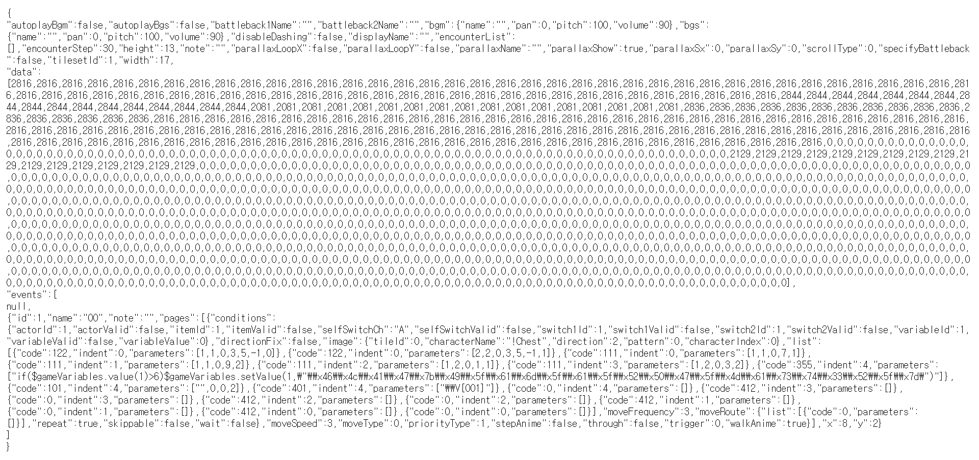 그리고 그 아래 data가 잔뜩 있는데, 숫자 배열을 보면 저게 맵에 있는 블록 하나하나를 나타내는 듯합니다