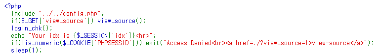 만약 PHPSESSID가 숫자가 아니라면 Access Denied 처리를 해주네요