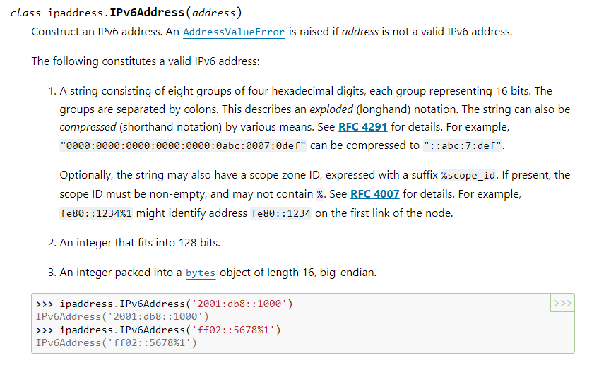 https://docs.python.org/3/library/ipaddress.html#module-ipaddress