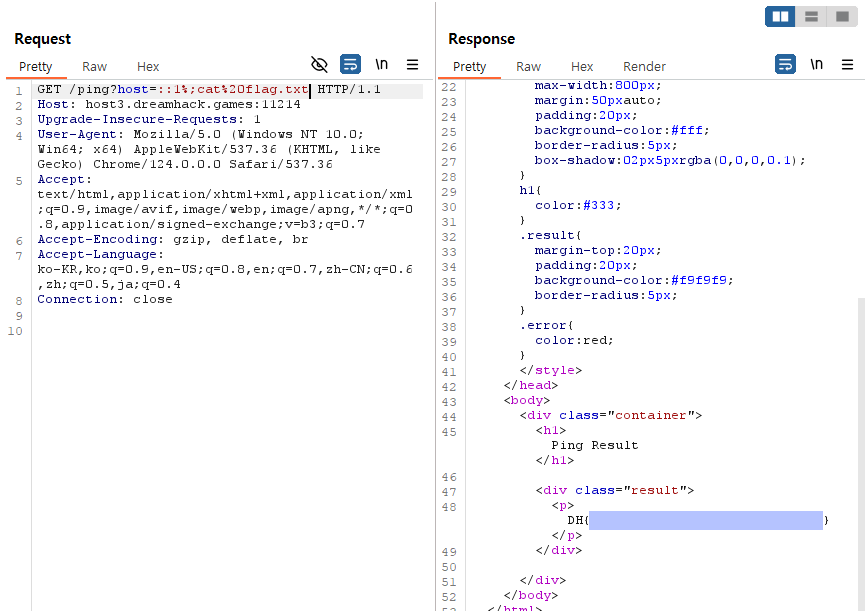 FLAG는 flag.txt에 있었으니, cat flag.txt를 넣어서 보내주겠습니다