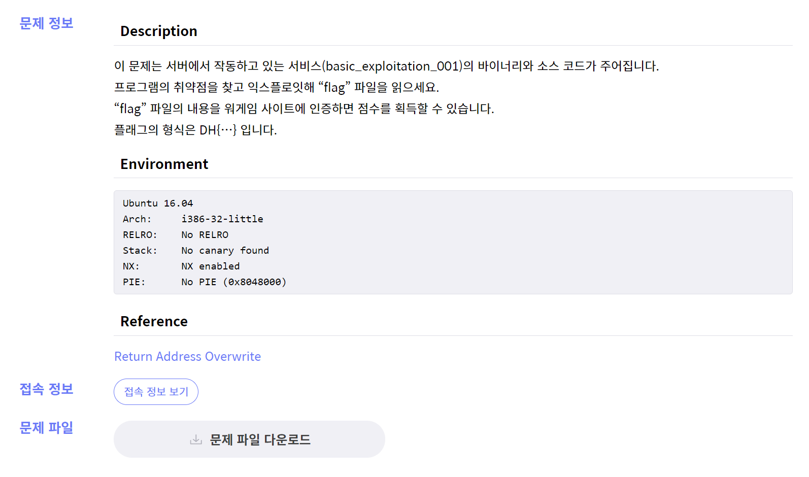 버퍼의 개념과 오버플로우 익스코드 구현을 복습하기에 좋았습니다.