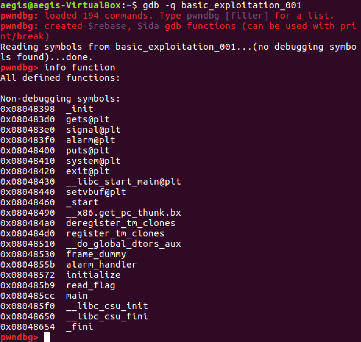 info function 명령어로 read_flag() 함수의 주소도 알아냈으니 이제 파이썬으로 익스코드를 짜 보겠습니다.
