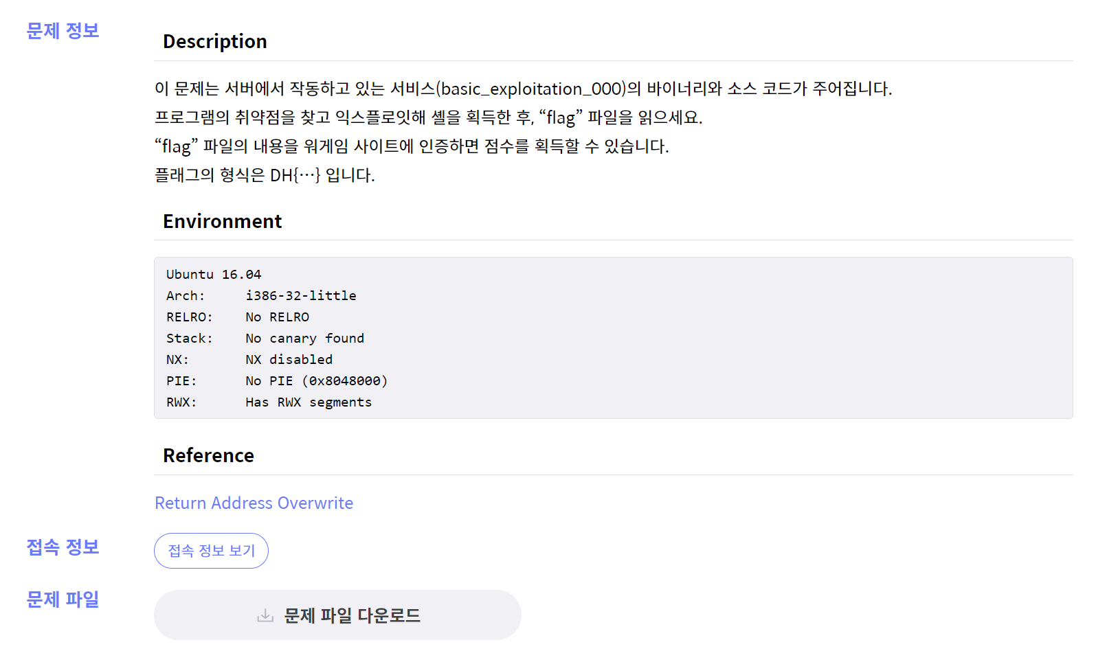 basic_exploitation_000.c 파일의 소스코드입니다.