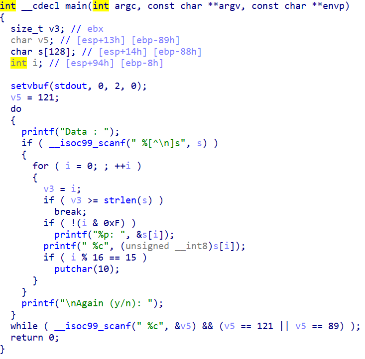 이 코드에서 입력을 받는 부분은 do부분에 있는 s, while부분에 있는 v5 이렇게 두 부분입니다.