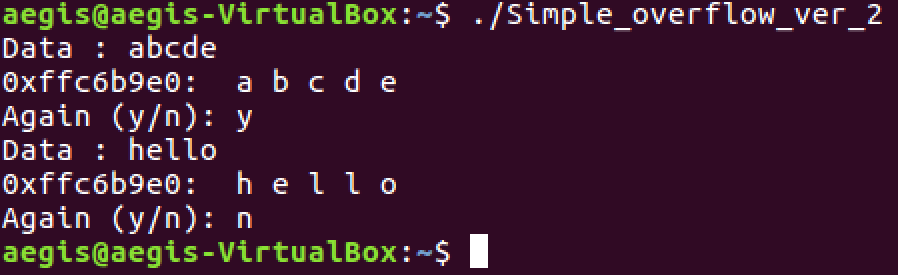 그 후에 y/n 둘 중 하나를 선택하도록 해서 v5를 입력받을지 아니면 종료할지 판별하게 됩니다.