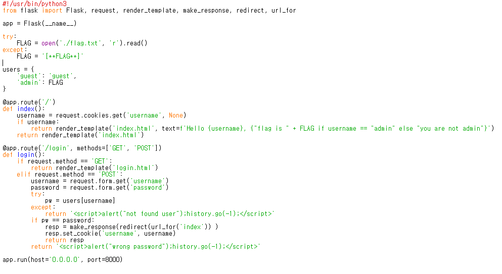 화면에는 "Hello geust, you not admin"이라는 문구만 나오고
