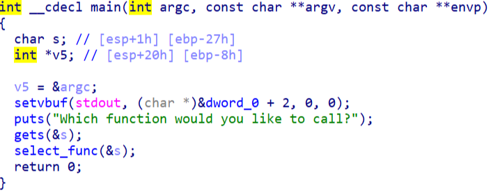 아까는 gets에서 오버플로우를 일으키는 방식으로 풀이를 생각했지만, 지금부턴 select_func() 함수에 집중해보겠습니다.