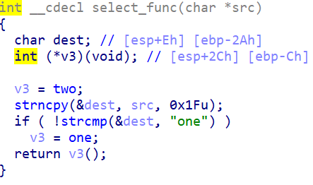 select_func() 함수를 보면 strncpy 함수를 이용해서 dest에 src 값을 0x1F(10진수로 31)만큼 복사합니다.