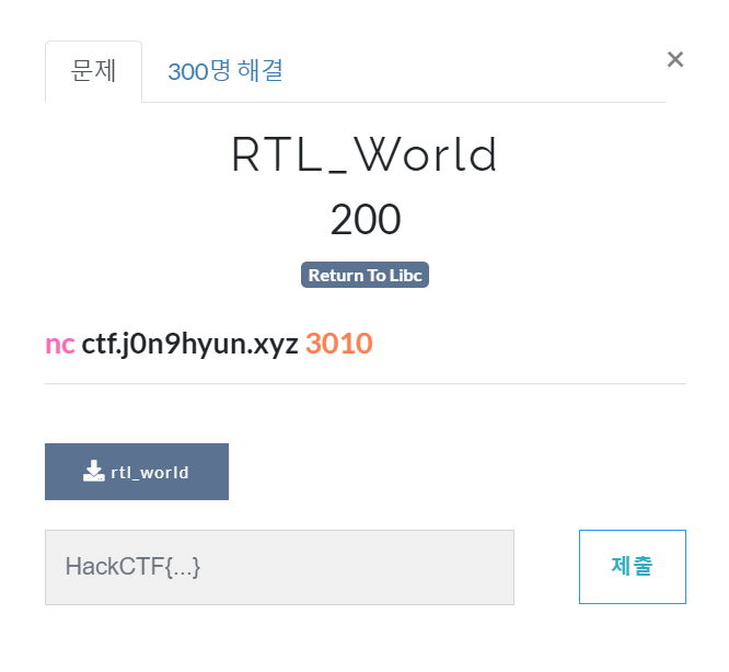 우선 rtl_world 파일을 실행시켜 골드로 system, shell의 주소를 사보도록 하겠습니다.