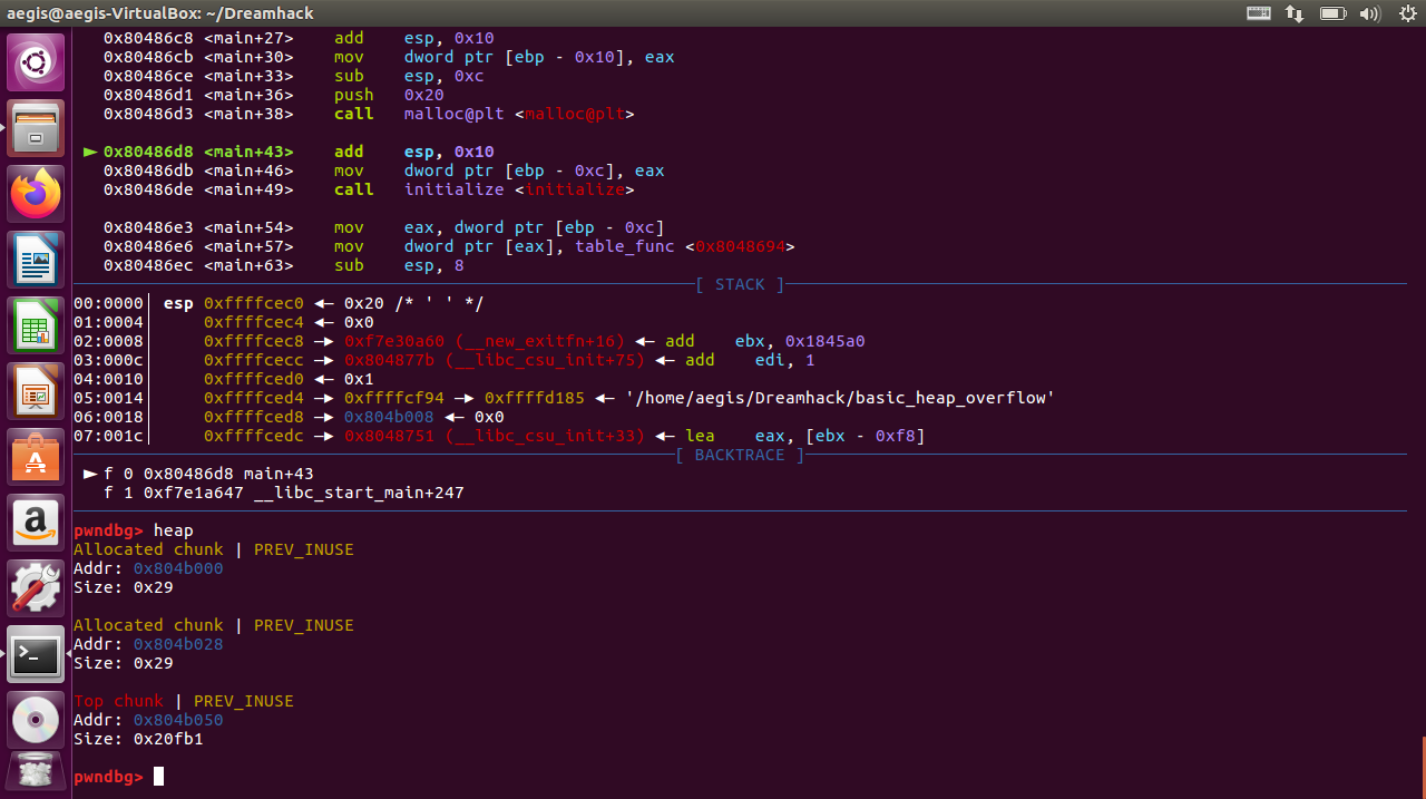 그리고 크기 0x20의 힙 버퍼 over를 만들고 이를 구조체 over로 묶어줍니다.