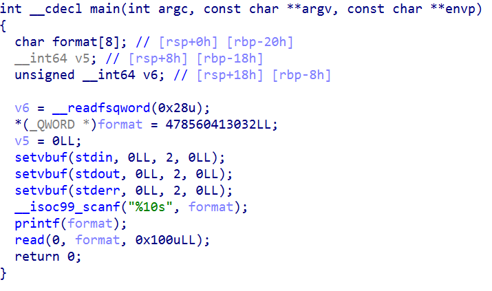 0x20 크기의 char형 배열 format이 선언되어있습니다.