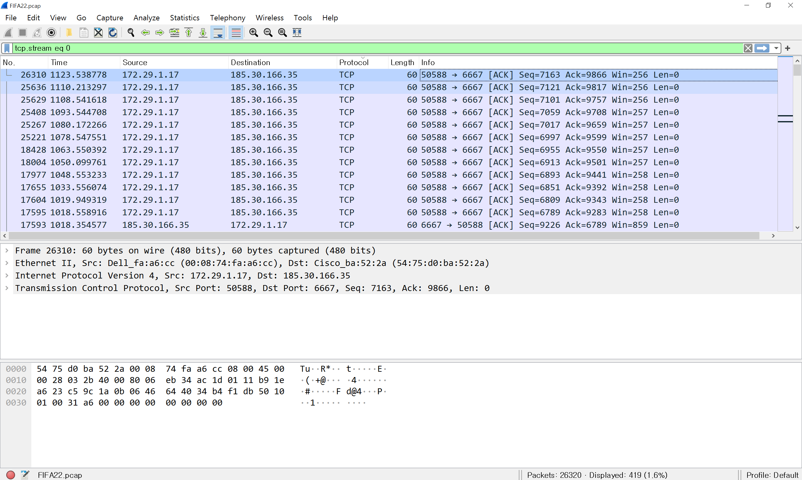 딱 보아도 패킷의 양이 어마 무시하게 많기 때문에 하나하나 분석하는 건 포기해야겠습니다.