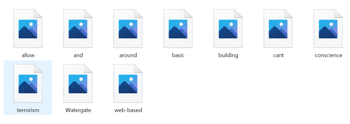 파일 이름이 단어인 jpg 형식의 파일들이 가득 들어있습니다.