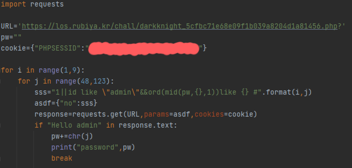 이제 pw를 알아내기 위해 파이썬으로 코드를 짜서 돌려보겠습니다.