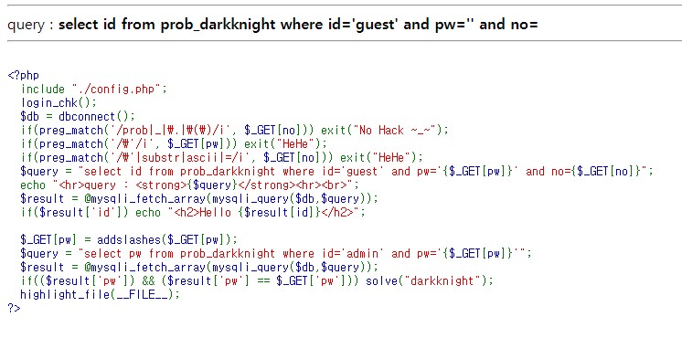 pw는 ' 문자가 필터링되고, no는 ', substr, ascii, =가 필터링됩니다.