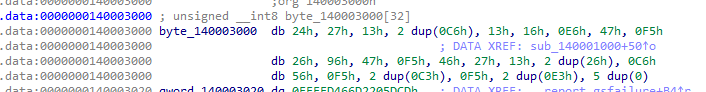 그리고 for문을 돌리는 횟수가 0x1C(10진수로 28)인데, byte_140003000에 들어있는 16진수가 기준인 듯합니다.