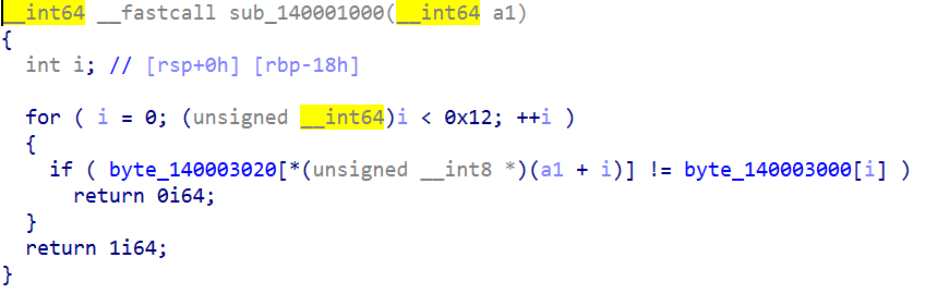 byte_140003000을 arr, byte_140003020을 brr, 사용자가 입력한 배열을 flag라고 정의하겠습니다.